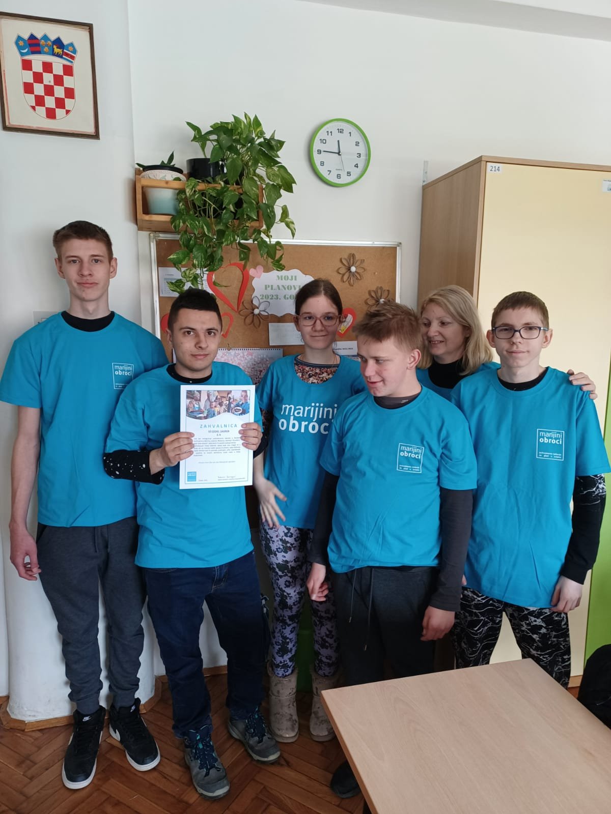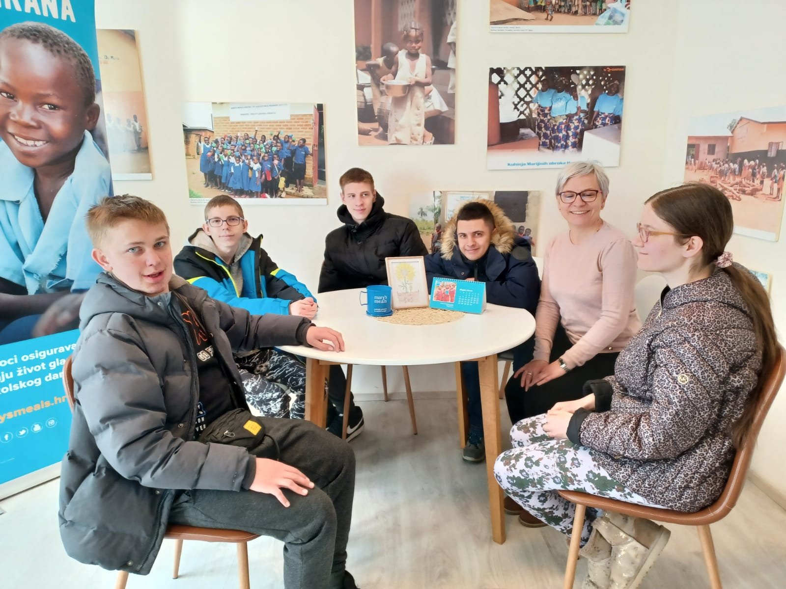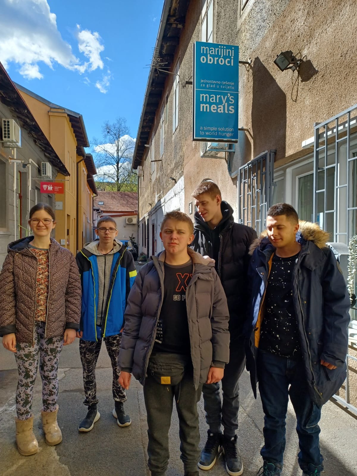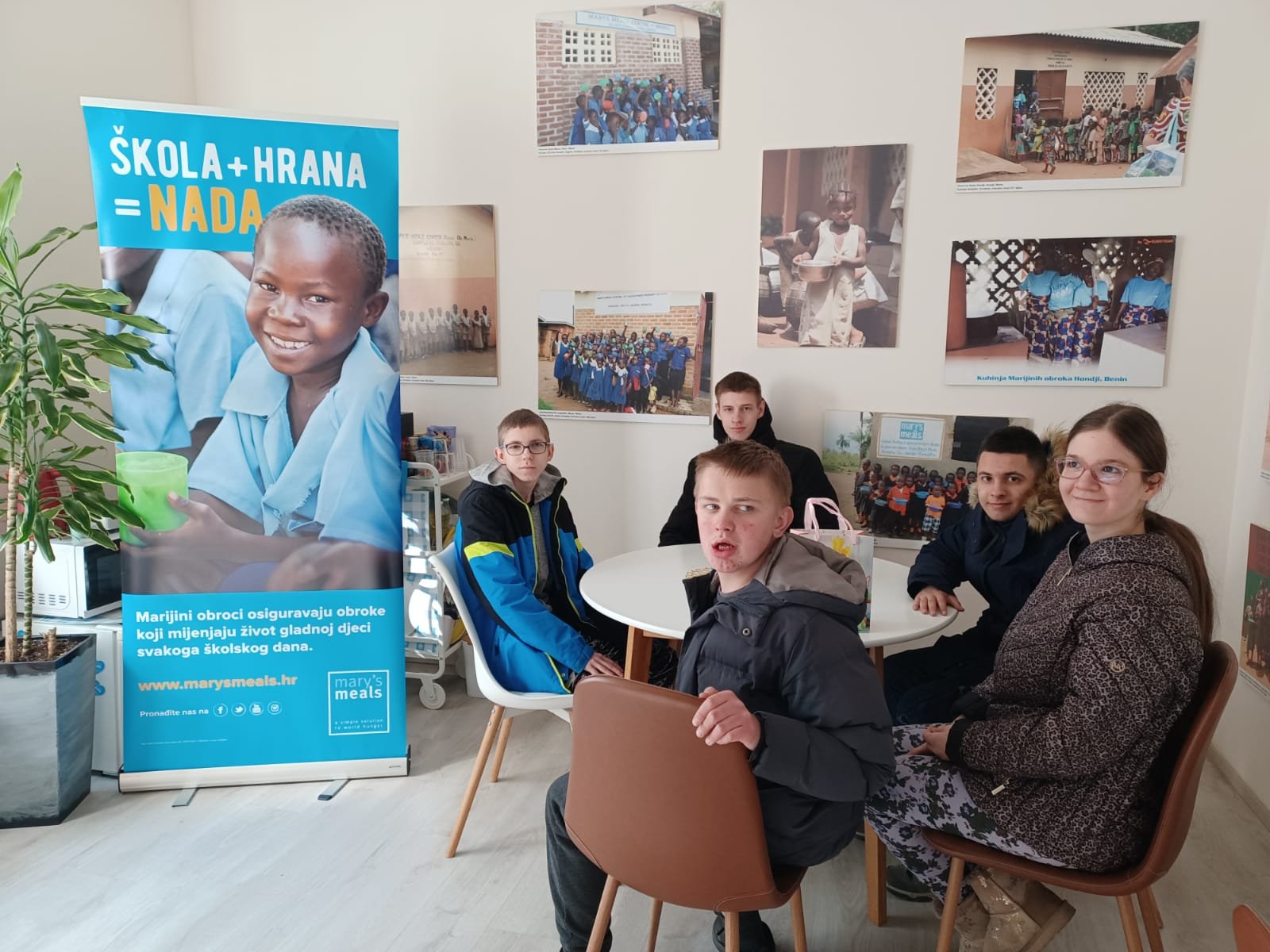 Učenici 2.K razreda su tijekom korizme na satovima razredne zajednice prvi puta čuli za Marijine obroke. Potaknuti snimkama mnogobrojne djece koja nemaju niti jedan dnevni obrok, odlučili su prikupljati novac i pomoći nekom vršnjaku da se školuje i prima topli obrok cijelu godinu. U školi smo kuhali i kušali kašu, dnevno se odricali i skupljali razredne priloge. 28.3.2023. odnijeli smo naše priloge u zagrebačku podružnicu Marijinih obroka i omogućili dnevni obrok i školovanje za troje djece. Gospođa Antonija nas je toplo primila, upoznala, fotografirala i podijelila s nama recept za kašu. Svi smo dobili majice s logom Marijinih obroka, a osjećaj radosti zbog činjenja dobra obasjao nam je lica i srca. Za uspomenu na smo gđi Antoniji predali sliku, rad našeg učenika Antonia. Nadamo se da ćemo svojim malim primjerom potaknuti i druge na djela ljubavi.