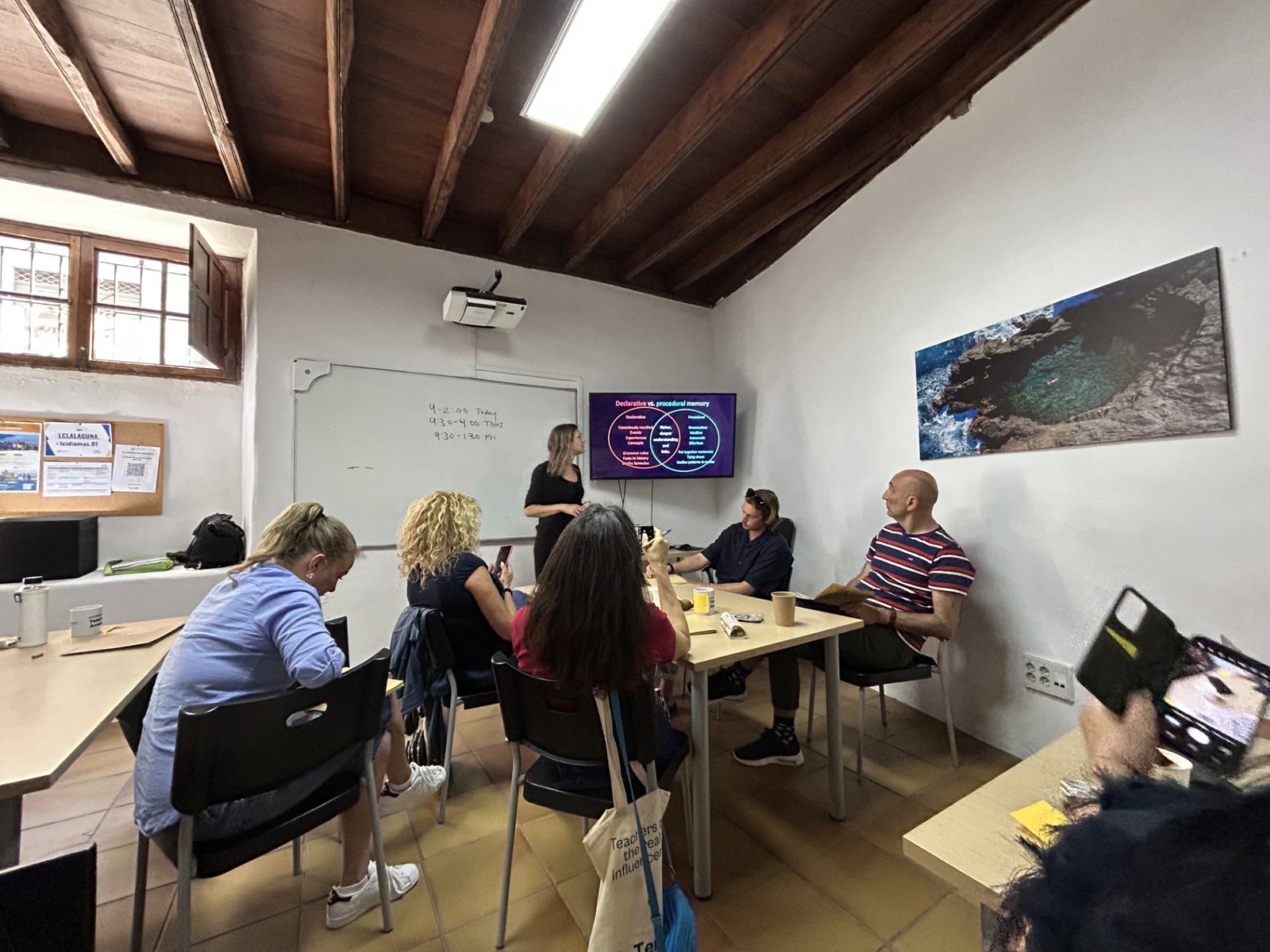 U tjednu od 22. do 26. travnja 2024., tri profesorice naše škole bile su u sklopu Erasmus KA1 projekta na tečaju pod nazivom Neurosciens-how your students learn. Motivacija, emocije, percepcija, memorija, strategije učenja i smanjenja stresa u procesu učenja bile su glavne teme edukacije. Radilo se u učionici i izvan nje, a sama edukacija ispunjena je cijelim nizom praktičnih aktivnosti koje ćemo zasigurno prenijeti kolegicama i kolegama u školi, ali i primijeniti u radu s učenicima. Učenje na otvorenom sigurno je bilo ugodnije i opuštenije, zahvaljujući prekrasnim krajolicima Tenerifa na kojima se tečaj održavao.