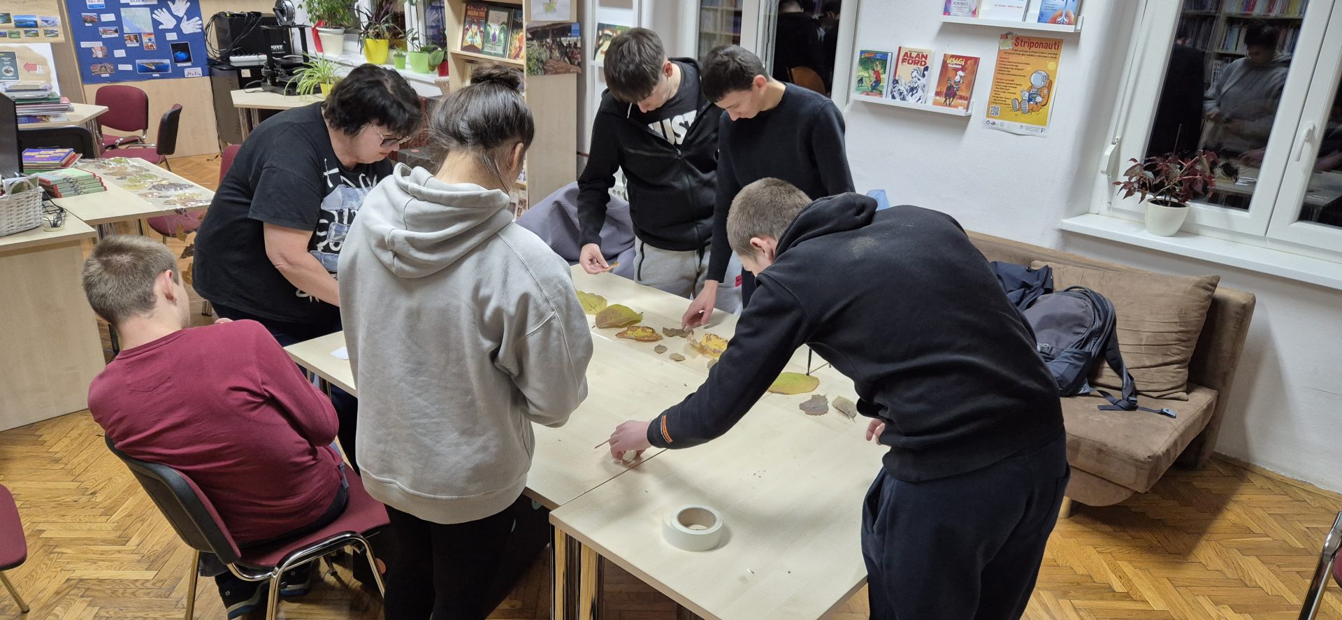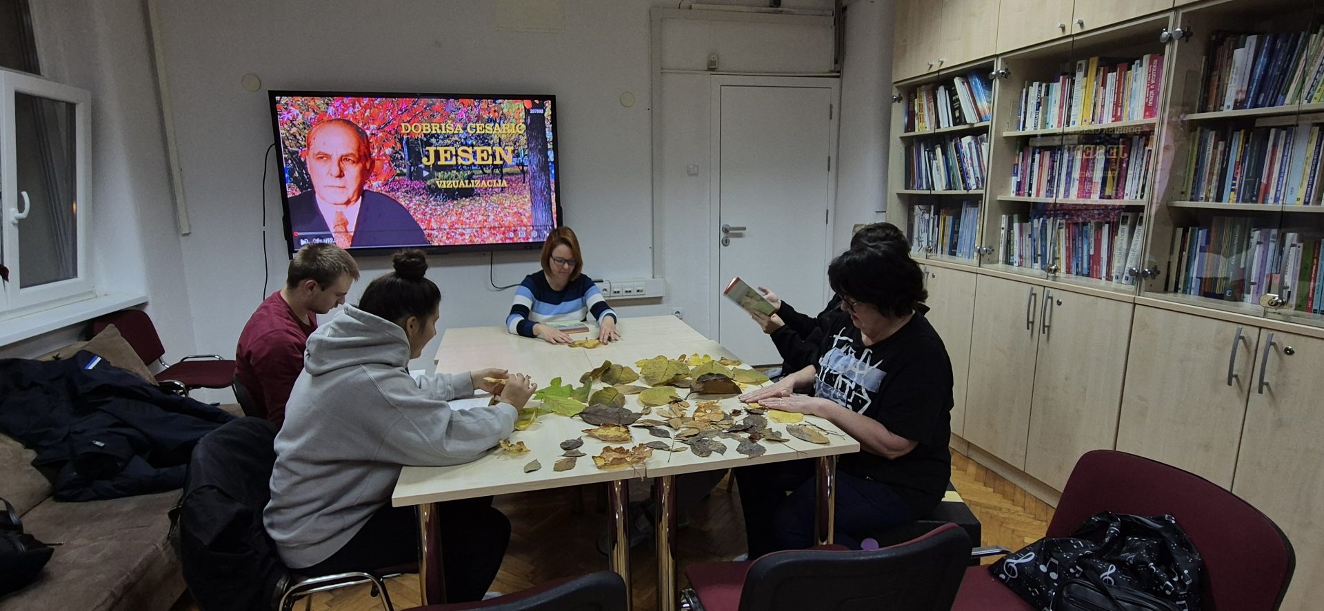 U petak, 14.11.2025. učenici 3.B i njihova profesorica hrvatskog jezika, posjetili su knjižnicu. Knjižničarka ih je upoznala s poezijom Dobriše Cesarića. Poslušali su pjesmu Jesen uz vizualizaciju stihova te razgovarali o motivima jeseni. Nakon toga, učenici su sudjelovali u kreativnom radu – izrađivali su zavjese od jesenskog lišća i ukrašavali prozore na hodnicima škole, unoseći duh jeseni u školu. U tome su im pomogli učenici 3.G.
