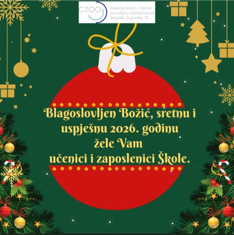 Blagoslovljen Božić, sretnu i uspješnu 2026. godinu žele Vam učenici…
