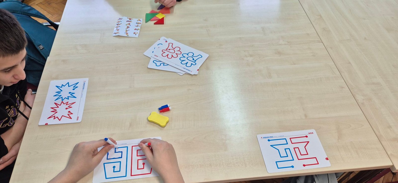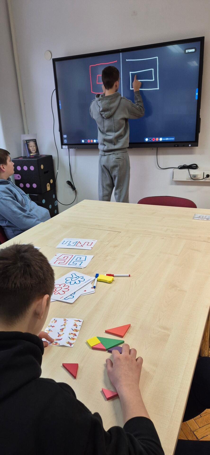 🧠 Učenici 1.G i 1.L razreda u školskoj knjižnici su isprobali nove aktivnosti koje potiču koncentraciju i kreativno razmišljanje! Kroz tangram i bilateralno praćenje linija učenici su vježbali fokus, koordinaciju, logičko razmišljanje i međusobnu suradnju. Prema vlastitim željama, dio učenika se okušao u crtanju na interaktivnoj ploči i čitanju stripova. Učenje kroz igru još jednom se pokazalo kao odličan način za razvoj pažnje i motivacije učenika, a knjižnica se potvrdila kao mjesto koje nadilazi posudbu knjiga te  je prostor za učenje, kreativno izražavanje i zabavu. Obje radionice održane su 28.1.2026.✨