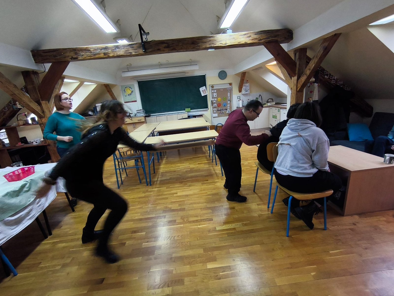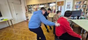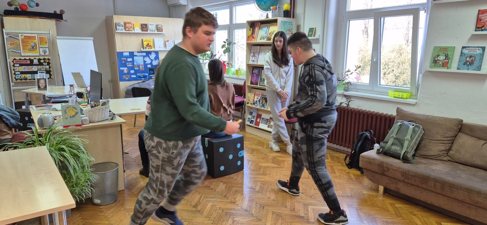 Za vrijeme malog odmora učenicima je ponuđena mogućnost da ga provedu uz jednostavne, a zanimljive igre. Igre potiču tjelesnu i intelektualnu aktivnost, spretnost, motoriku, koordinaciju, timski rad, ali najvažnije od svega želja nam je da se pojavi što veći osmijeh na njihovim licima. Mislimo da smo bili uspješni s prvom igrom jer su svi koji su sudjelovali na sljedeći školski sat otišli s osmijehom. ![]()