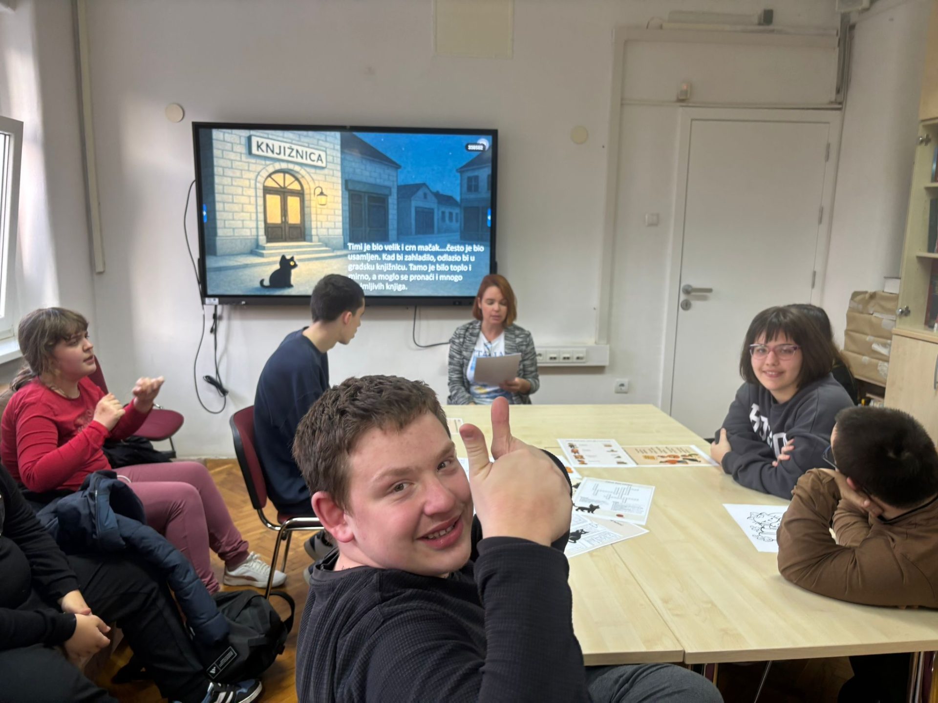 Nastavljamo s našim aktivnostima u Mjesecu hrvatske knjige! U pondjeljak, 10.11.2025. knjižnicu su posjetili učenici OOS 4 i OOS 5 sa svojim razrednicama Ivanom i Andreom. Knjižničarka im je pročitala priču Maje Lesinger „Oprostite, jeste li vi knjižničarka?“ Nakon što su se nasmijali i zajedno prepričali priču, učenici su marljivo prionuli kreativnim zadacima vezanim uz priču uz pomoć svojih razrednica i knjižničarke. Njihovi osmjesi sve govore!