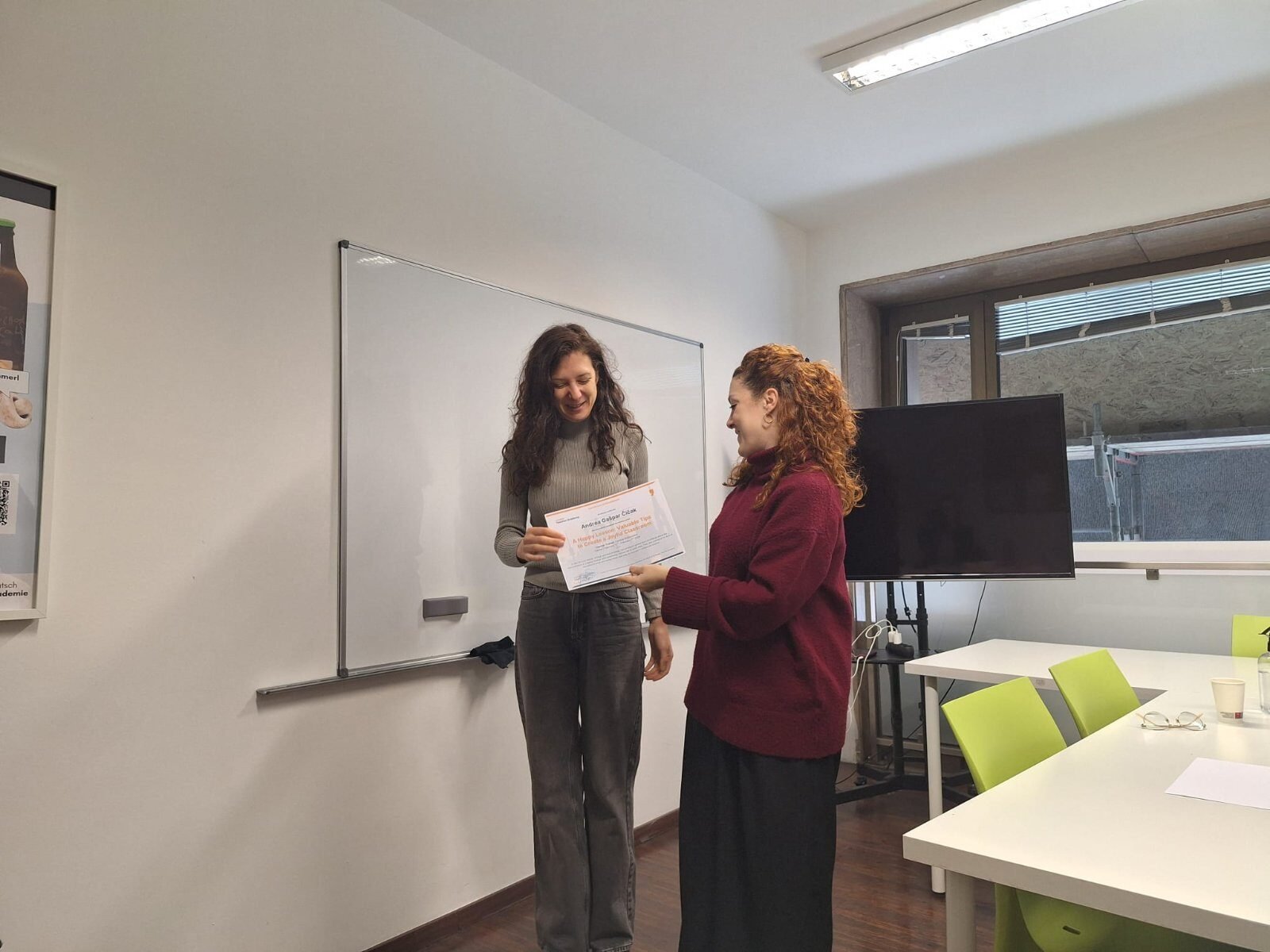 U razdoblju od 2. do 5. veljače 2026. godine dvije profesorice naše škole sudjelovale su u strukturiranom tečaju pod nazivom „A Happy Lesson: Valuable Tips to Create a Joyful Classroom“ koji je organizirala Europass Teacher Academy u Beču (Austrija). Tijekom edukacije stekle su nova znanja i praktične ideje koje će primijeniti u svakodnevnom radu s učenicima, s ciljem jačanja motivacije, zadovoljstva, uspješnosti u učenju.