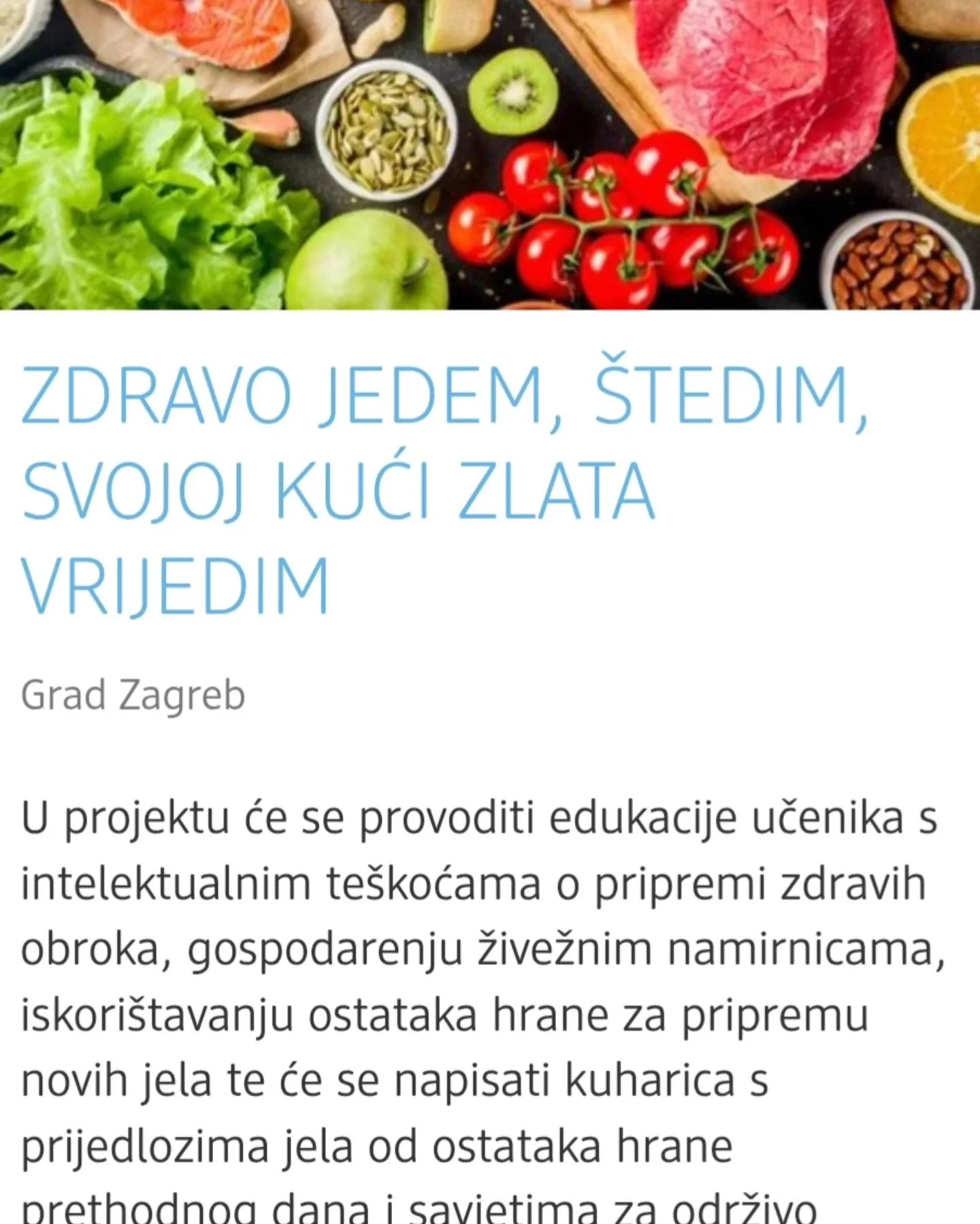 Našoj školi je odobreno financiranje projekta ZDRAVO JEDEM, ŠTEDIM, SVOJOJ KUĆI ZLATA VRIJEDIM