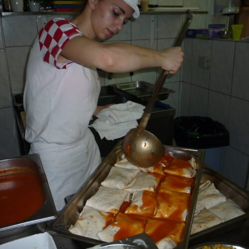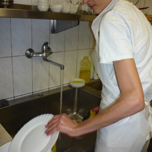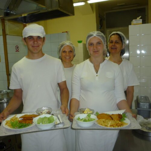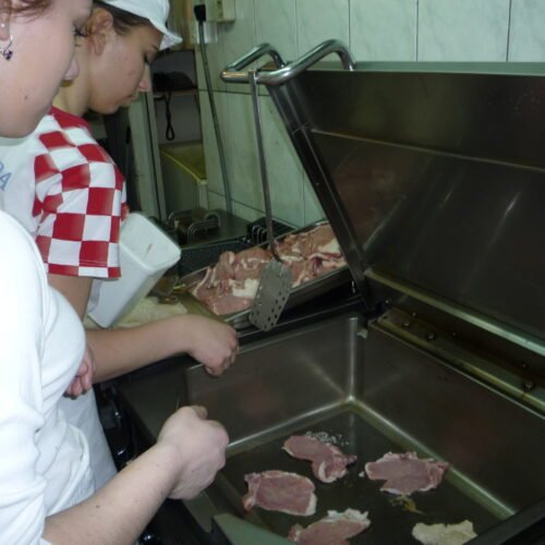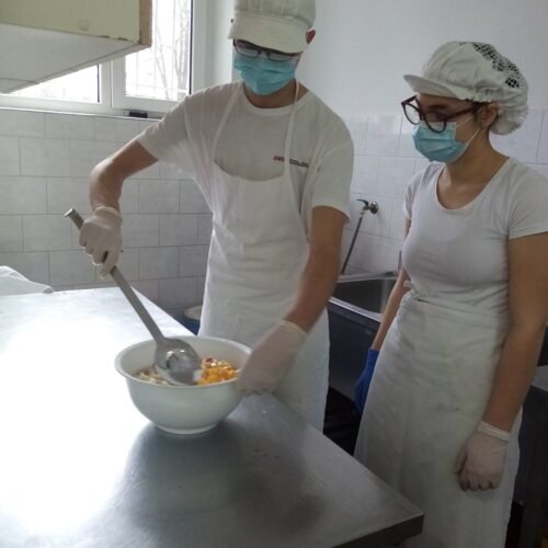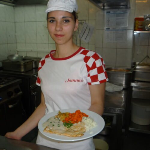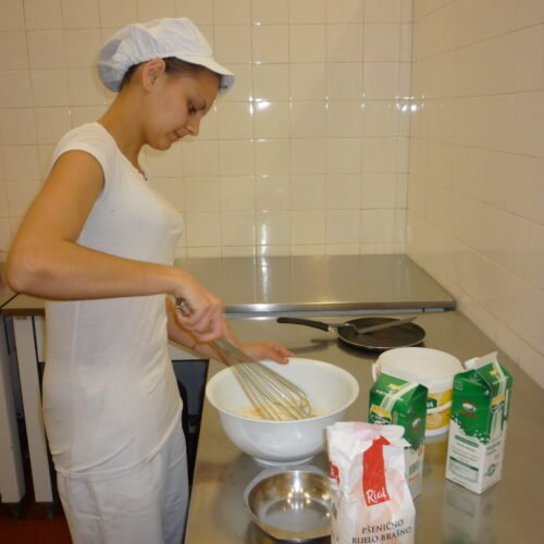 Pomoćni kuhar i slastičar Pomoćni kuhar i slastičar je dio je tima osoblja ugostiteljske kuhinje koji obavlja jednostavnije poslove pri pripremi namirnica i jela uz djelomični nadzor kvalificirane osobe – kuhara.Video prikaz zanimanja: https://www.youtube.com/watch?v=I-MLDZPpnw8POPIS KLJUČNIH POSLOVA ZANIMANJA:Obavlja poslove prijema i skladištenja namirnicaObavlja poslove čišćenja i pripremanja namirnicaObavlja poslove pripreme i pranja posuđa te kuhinjskog prostoraPomaže pri prigotovljavanju jelaObavlja poslova izdavanja hraneObavlja poslove čišćenja i zbrinjavanja otpadaMJESTA IZVOĐENJA STRUČNE PRAKSE:školski ugostiteljski praktikumkuhinje u dječjim vrtićima, učeničkim i umirovljeničkim domovimakuhinje restorana i poduzećaMOGUĆNOSTI ZAPOŠLJAVANJAkuhinje u restoranimakuhinje u hotelskom smještajukuhinje u učeničkim, studentskim i umirovljeničkim domovimakuhinje u dječjim vrtićimakuhinje u bolnicamaslastičarnicekuhinje restorana brze prehrane