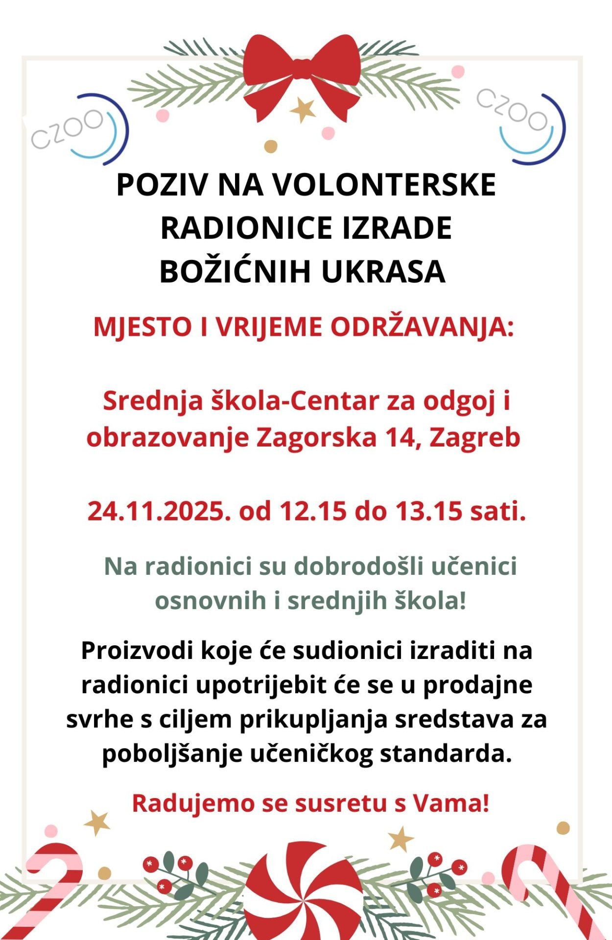 Poziv na volonterske radionice izrade božićnih ukrasa19.11.2025Vijesti Veselimo se zajedničkom druženju! Podijeli Prethodni Objava READY FOR VET! – sastanak KA210 projekta u Konyi Sljedeći Objava Ready for VET! - mobilnost u Konyi