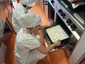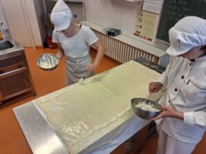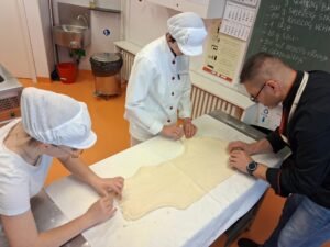 U utorak 21. travnja 2026. su učenice 2.A razreda, pod vodstvom prof. Hrvoja Kneževića sudjelovale u radionici izrade jednog od hrvatskih tradicionalnih jela – zagorskih štrukli. U sklopu projekta “Korijenima i krilima: umjetnost ljubavi prema domovini”, učenice su imale priliku naučiti koja je razlika između autohtonog i tradicionalnog jela, koja su hrvatska autohtona jela, koja je razlika između izrade tijesta za štrudlu i tijesta za štrukle, te koji su sastojci i postupak izrade jednog od najpoznatijih tradicionalnih jela na našim područjima.