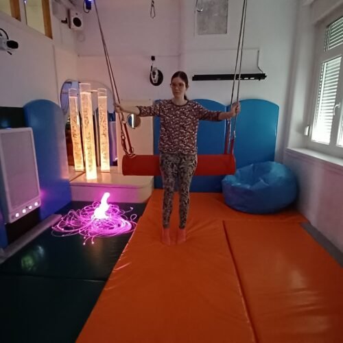 Senzorna integracija je neurobiološka aktivnost unutar našeg tijela kojom živčani sustav obrađuje informacije primljene putem svih osjetila. To je proces koji organizira osjete iz okoline i tijela i omogućuje da na njih možemo odgovoriti nekom aktivnošću. Kod većine ljudi senzorna integracija događa se bez svjesnog razmišljanja ili uloženog truda. Uspješna senzorna obrada važna je za mnoge svakodnevne funkcije, kao što su sposobnost učenja, pažnje, vještine grube i fine motorike, osjećaj kretanja, ravnotežu, motoričko planiranje, vještinu govora i jezika, emocionalnu regulaciju, samopoštovanje. Poremećaj senzorne integracije javlja se kada su mozak i živčani sustav u nemogućnosti adekvatno integrirati osjetne informacije te tako dolazi do poteškoća u percepciji, ponašanju i učenju. Većina djece s teškoćama u razvoju ima teškoće senzorne integracije i potrebno im je dodatno poticanje. Poteškoće senzorne integracije dovode do raznih poteškoća u ponašanju, socijalizaciji, emocionalnoj stabilnosti, koncentraciji, samostalnosti i učenju. Stoga se u našoj školi u ugodnom okruženju, bojama, strunjačama, ljuljačkama i senzornom opremom obogaćenom prostoru senzorne sobe provode aktivnosti senzorne integracije. Ondje učenici individualno, u paru ili skupno dolaze i početno se upoznaju s prostorom senzorne sobe i mnogobrojnim senzornim efektima koje soba posjeduje (vodenom tubom, zvjezdanim nebom, projekcijama, zidnim panelom) kao i različitom opremom koja im pruža poticaje za istraživanje i učenje. U prostoru senzorne sobe u individualnom ili skupnom radu se učenici uz osjećaj sigurnosti umiruju, ljuljaju, kreću, plešu, odmaraju, uče kroz igru. Kroz mnogobrojne aktivnosti kod učenika se potiče kreativnost, pospješuje koncentracija, unaprjeđuju se komunikacijske vještine, poboljšava samokontrola što dovodi do veće uspješnosti u nastavi, na stručnoj praksi i svim aktivnostima svakodnevnog života.