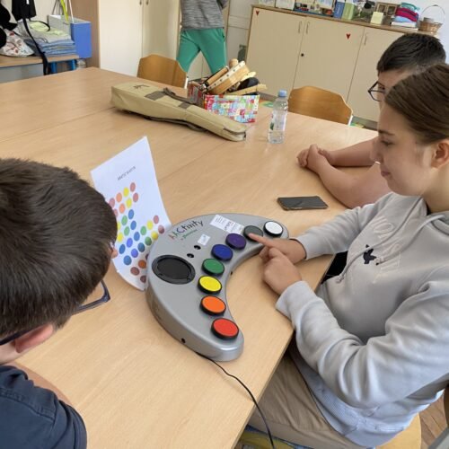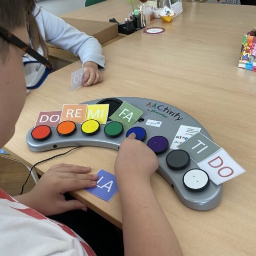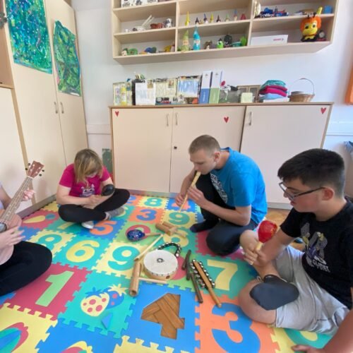 Program muzikoterapije provodi se s učenicima uključenim u program radnog osposobljavanja te u sklopu produženog stručnog postupka (PSP). U ovom programu koristimo glazbu kako bismo potaknuli emocionalni, kognitivni, fizički i socijalni razvoj učenika. Glazbene aktivnosti, poput pasivnog slušanja odabrane glazbe, mogu pozitivno utjecati na emocionalni razvoj učenika smanjenjem razine stresa i anksioznosti te poboljšanjem raspoloženja. Aktivnosti aktivnog muziciranja i komponiranja omogućuju učenicima lakše izražavanje vlastitih emocija. Sudjelovanje u glazbenim, zvučnim i vokalno-plesnim igrama te aktivnostima sviranja i pjevanja učenicima donosi zabavu i istovremeno poboljšava pažnju, koncentraciju, vještine pamćenja i zapamćivanja, koordinaciju i motoričke vještine, što pozitivno utječe na njihov cjelokupni razvoj. Muzikoterapijske aktivnosti uglavnom provodimo u grupama, što dodatno potiče razvoj socijalnih i komunikacijskih vještina.