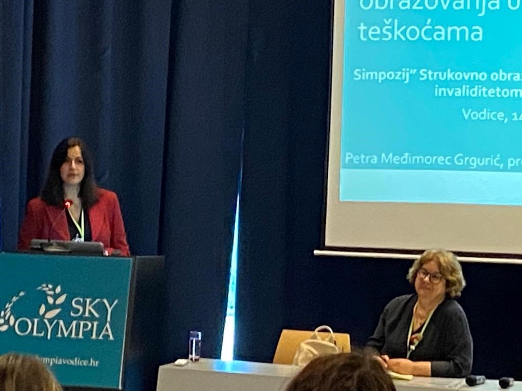 Petra Međimorec Grgurić, prof. i ravnateljica Đana Baftiri sudjelovale su na simpoziju ” Strukovno obrazovanje i zapošljavanje osoba s invaliditetom-izazovi i prilike” u organizaciji Saveza edukacijskih rehabilitatora Hrvatske. P.Međimorec Grgurić je govorila o “Izazovima strukovnog obrazovanja učenika s teškoćama”, dok je ravnateljica Baftiri izlagala na temu “Podrška roditeljima u strukovnom obrazovanju”. Ujedno je prikazan film naše škole “Zajedno do cilja”. Drago nam je da smo aktivnim pristupom dali svoj stručni doprinos simpoziju.