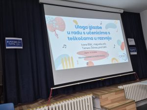- Uloga glazbe u preventivnom radu s učenicima s teškoćama u razvoju – izlaganje su održale Ivana Bilić, mag. rehab. educ. i Tamara Štimac, prof. def.