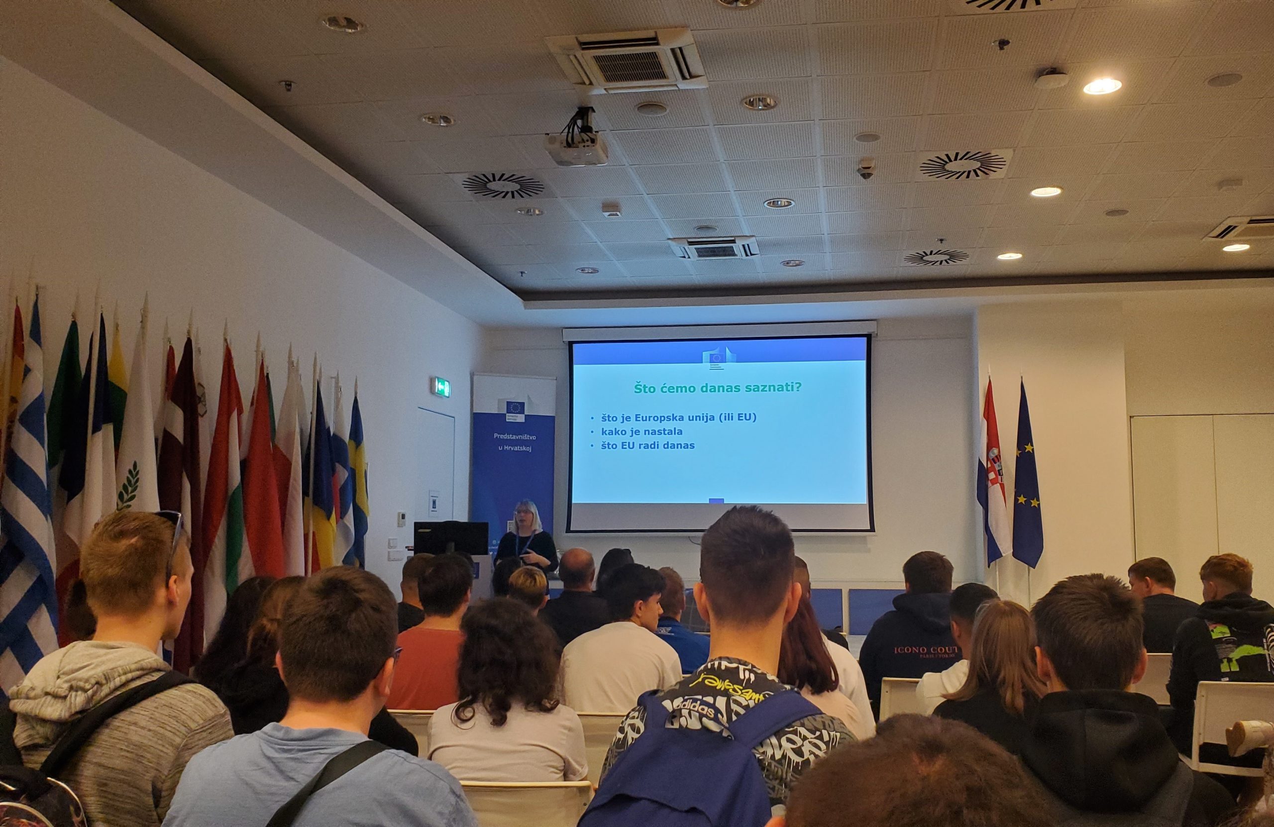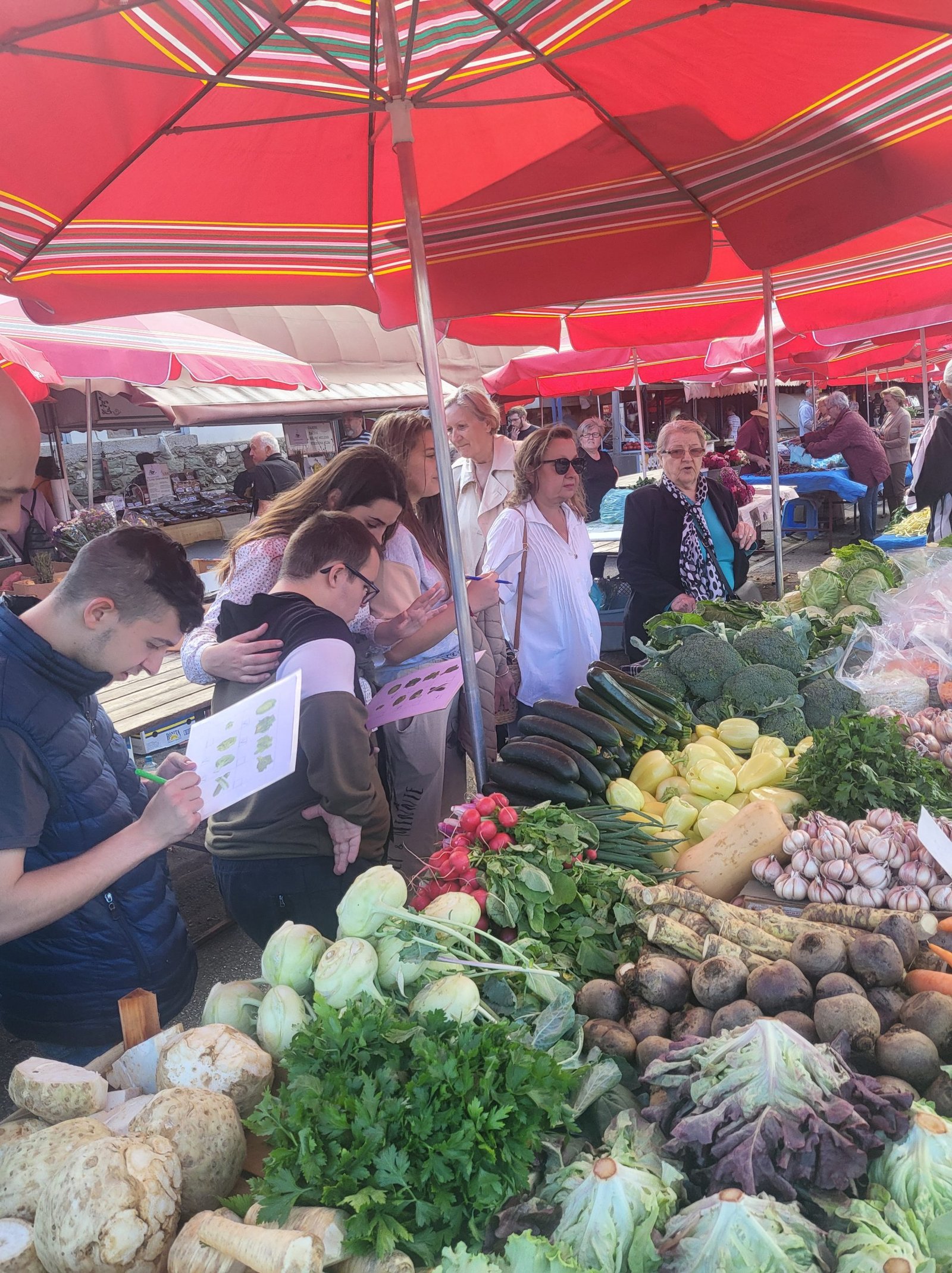 Današnji dan naši su učenici prvih i drugih razreda u pratnji nastavnika proveli na terenskoj nastavi. Učenici prvih razreda posjetili su Trešnjevačku tržnicu gdje su učili o raznim vrstama voća i povrća te vježbali matematičke vještine u izračunu cijene proizvoda. Učenici drugih razreda, u sklopu predmeta “Politika i gospodarstvo”, posjetili su Europski dom u kojem su učili o tome što je Europska unija, kako je nastala te čime se EU bavi.