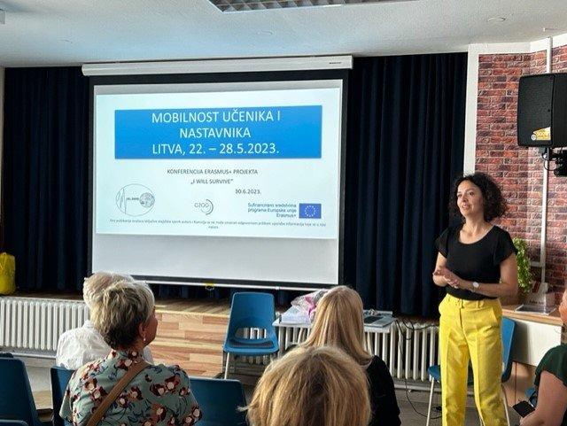 Završna konferencija Erasmus+ projekta I will survive! održana je 30. lipnja 2023. Posebno nam je zadovoljstvo bilo ugostiti predstavnicu Agencije za mobilnost i programe Europske Unije gospođu Ivanu Filipović te naše kolegice iz Sarajeva, čime je ova konferencija poprimila međunarodnu dimenziju.
