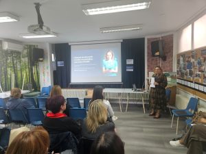 Gošća Tea Babić, univ. mag.iur iz Privatne glazbene škole „Iva Kuprešak“ predstavila nam je iskustva iz projekta Resilient Europe s predavanjem „Muzikoterapija i digitalni alati u jačanju otpornosti mentalnog zdravlja mladih“ koje se odlično nadovezalo na prethodnu temu.