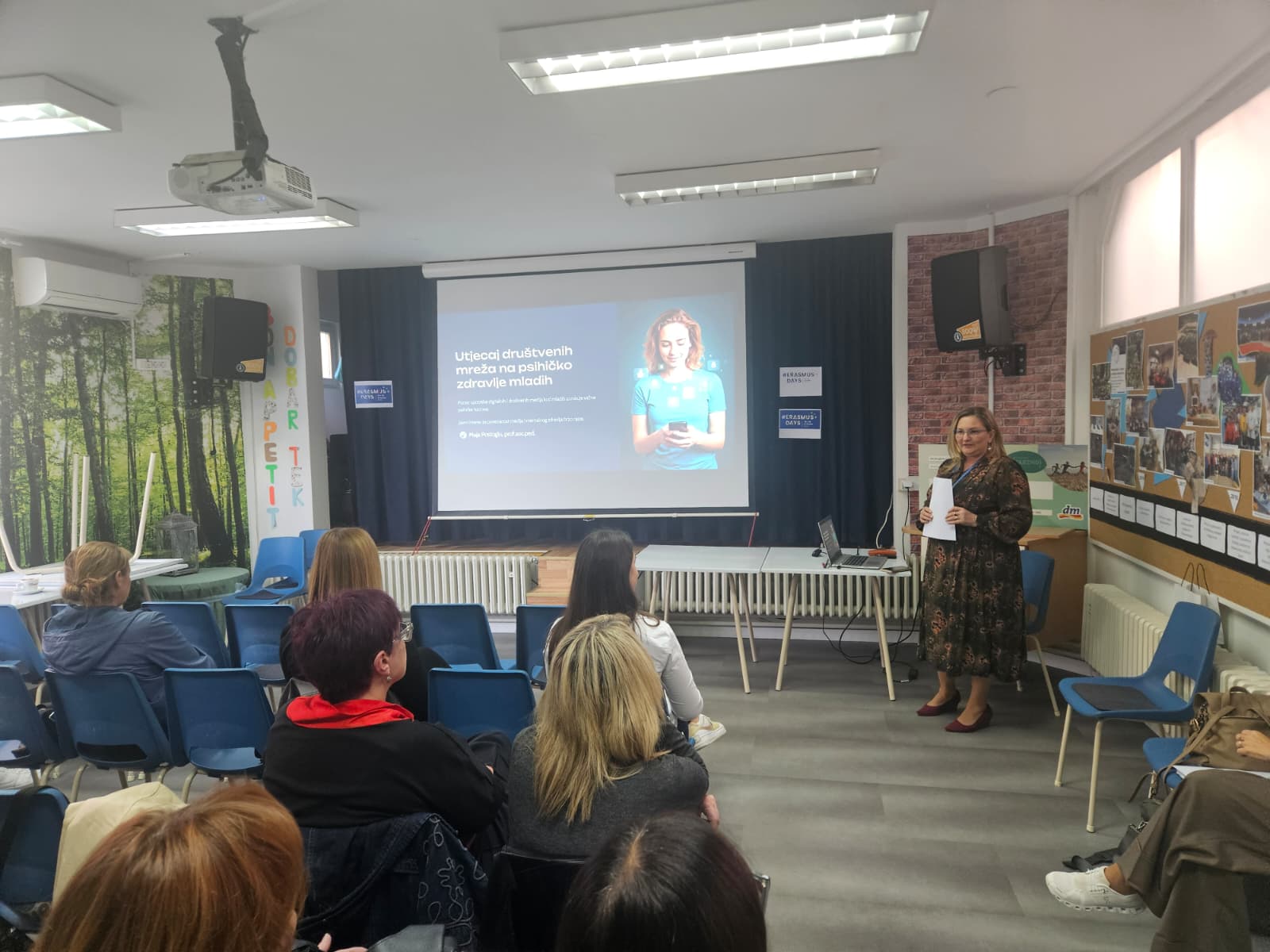 Socijalna pedagoginja i savjetnica Maja Postoglu održala je vrlo aktualno predavanje na temu „Utjecaj medija na mentalno zdravlje mladih“, ali i informirala sudionike o Danima Erasmusa koji se održavaju od 13. do 18. listopada ove godine.